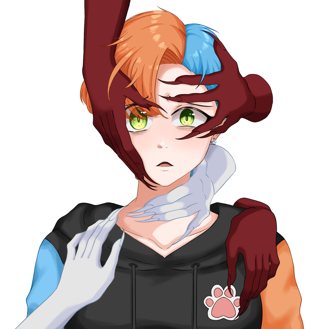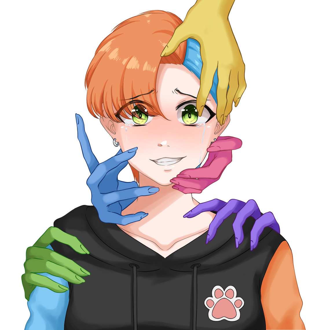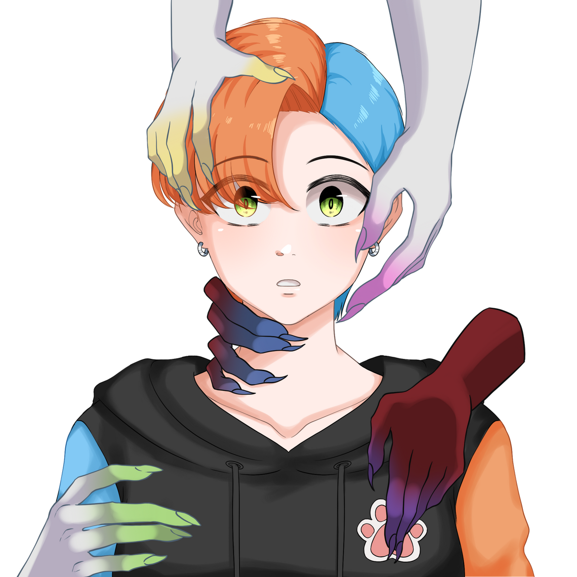The hands loosen their hold. Horrible insults which were once too loud reduced to whispers. Light swirls around, along with several colours, as they attempt to push away the darkness.